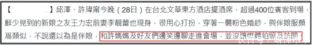 说起来,邱泽和许玮甯还带了他们的孩子参加婚礼,不知道李靓蕾为什么没带三个孩子一起来,还拒绝了媒体访问。
