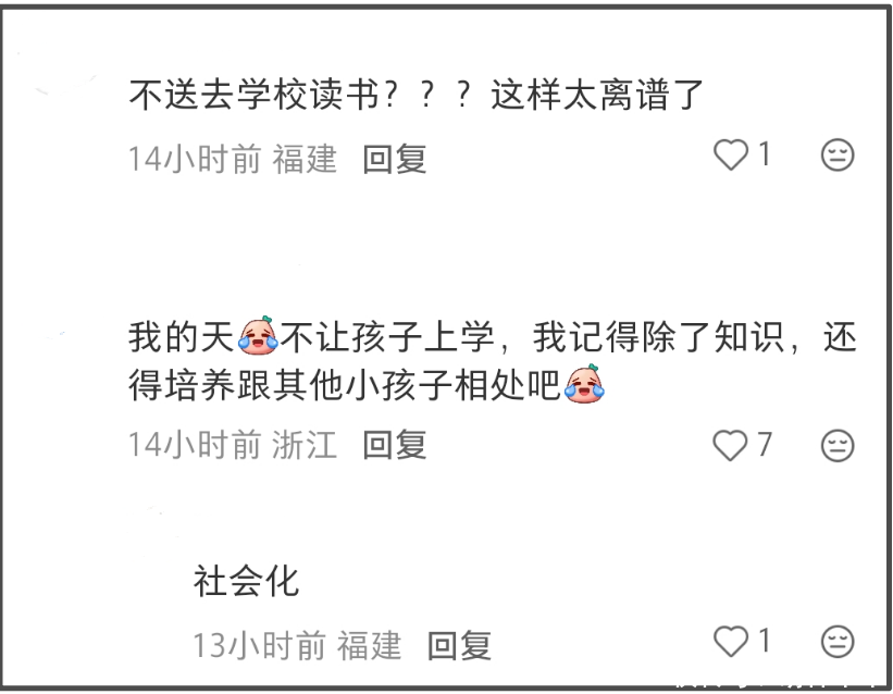 在网友看来,如果李靓蕾不让孩子上学,是会影响孩子社会化的。